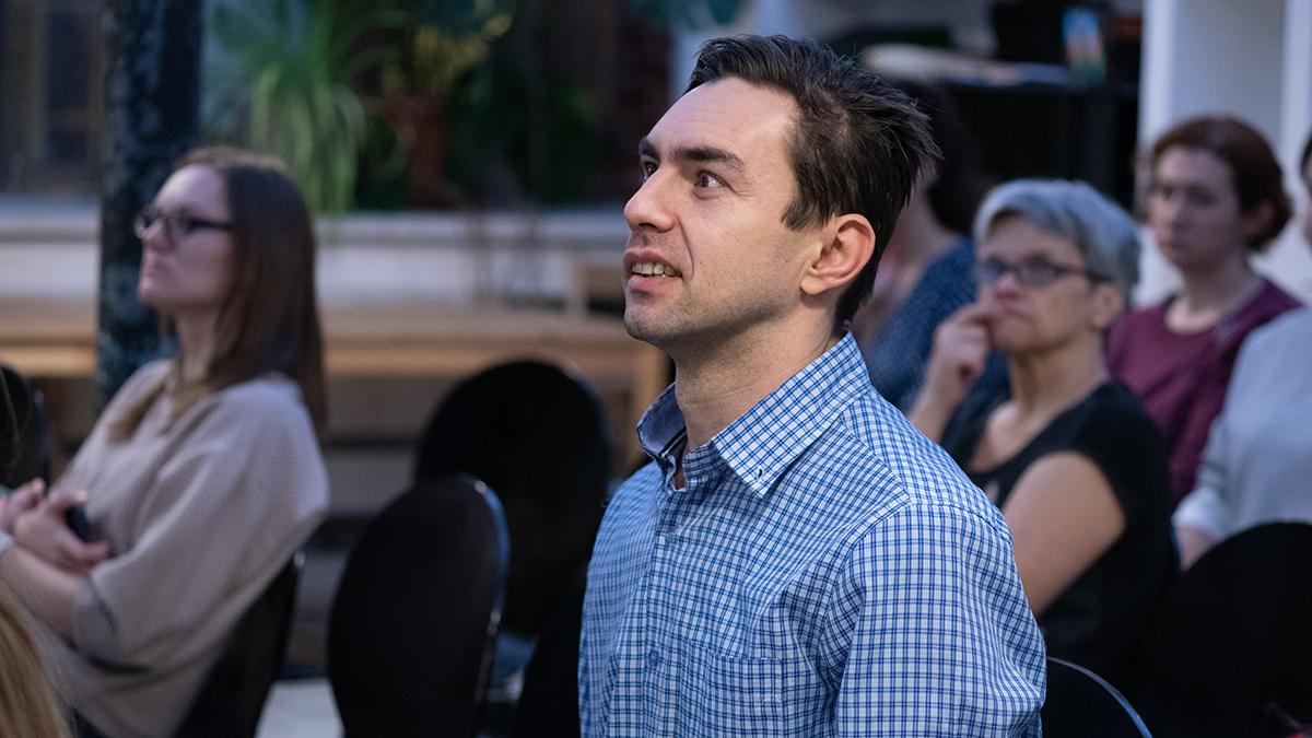 На встрече выступил Сергей Исаков, IT-аналитик и администратор базы данных Фонда помощи хосписам «Вера».