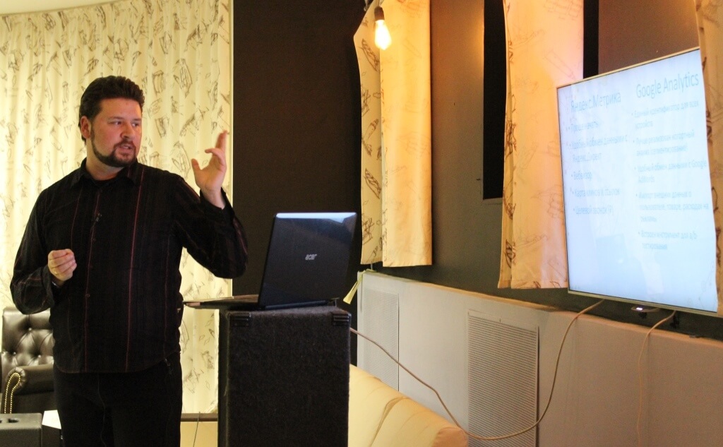 На встрече выступил Александр Лебедев, консультант, член Американской гильдии маркетологов, в прошлом глава отдела Web-аналитики интернет-компании Top-7.