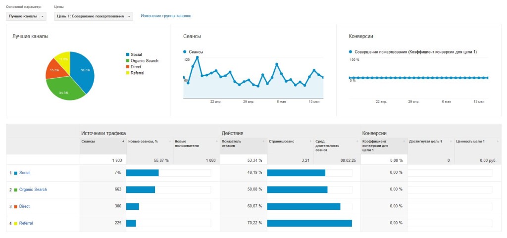 Конверсия (от лат. conversio — превращение) – это отношение числа посетителей сайта, выполнивших на нем какие-либо целевые действия. То есть вы изначально определяете важные для себя цели: количество просмотров, уникальных пользователей, прошедших регистрацию, — и Google Analytics будет отслеживать, как вы достигаете цели через количественный показатель. Например, если вы достигли 9 из 10 целей, то коэффициент конверсии составит 90%.