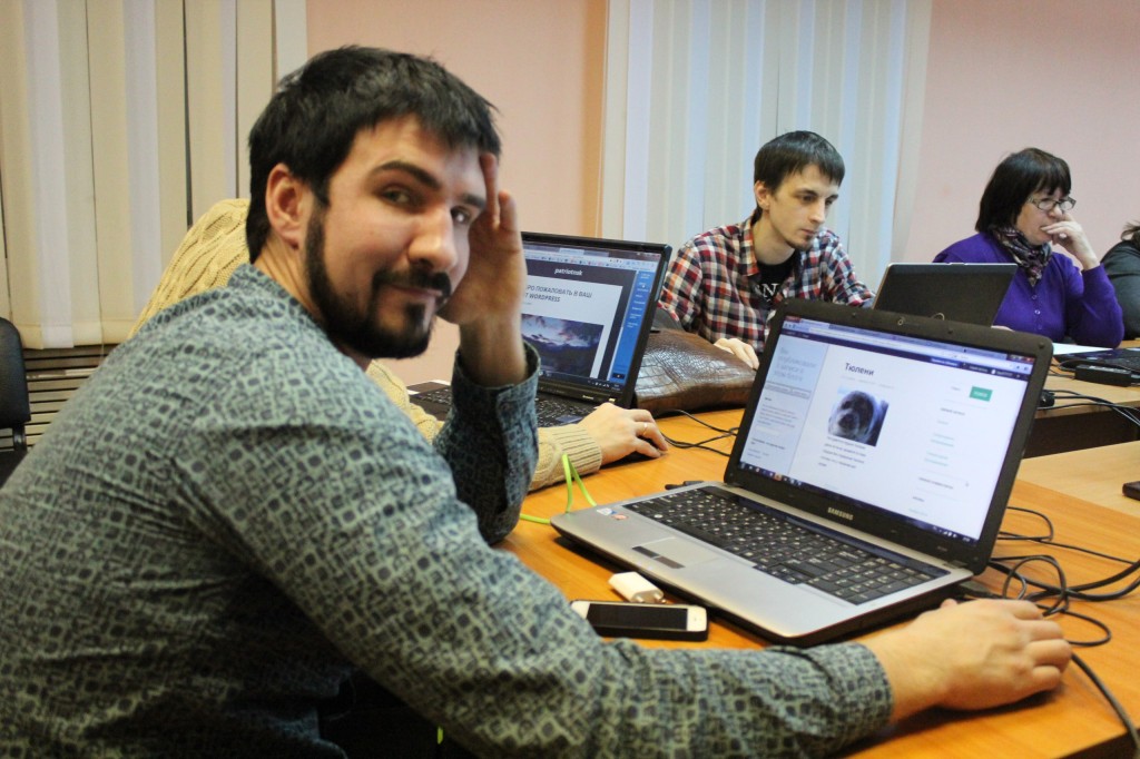 Экспертом и тренером на встрече стал web-разработчик Алексей Чарухин. В качестве оптимальной платформы для создания сайта выбрали WordPress: участники учились работать в этом конструкторе. Большинство взялись за такую задачу впервые и не обладали навыками программирования.